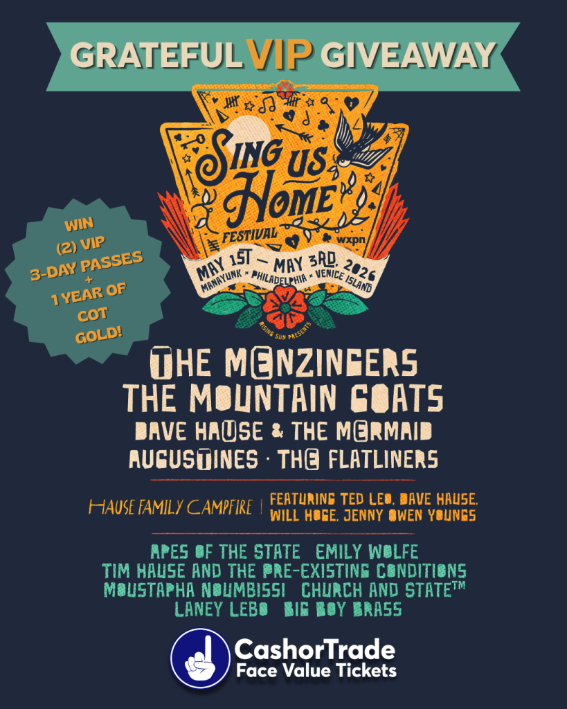 Sing Us Home Festival is returning to Manayunk’s Venice Island! Join us May 1st – 3rd, 2026 for this three-day fest celebrating punk rock and acoustic music, local food and drink, tattoos, art, a Philly-style second lines, and lots of brotherly (and sisterly) love! VIP passes for the weekend are already Sold Out, but CashorTrade has teamed up to bring you the ultimate prize package.