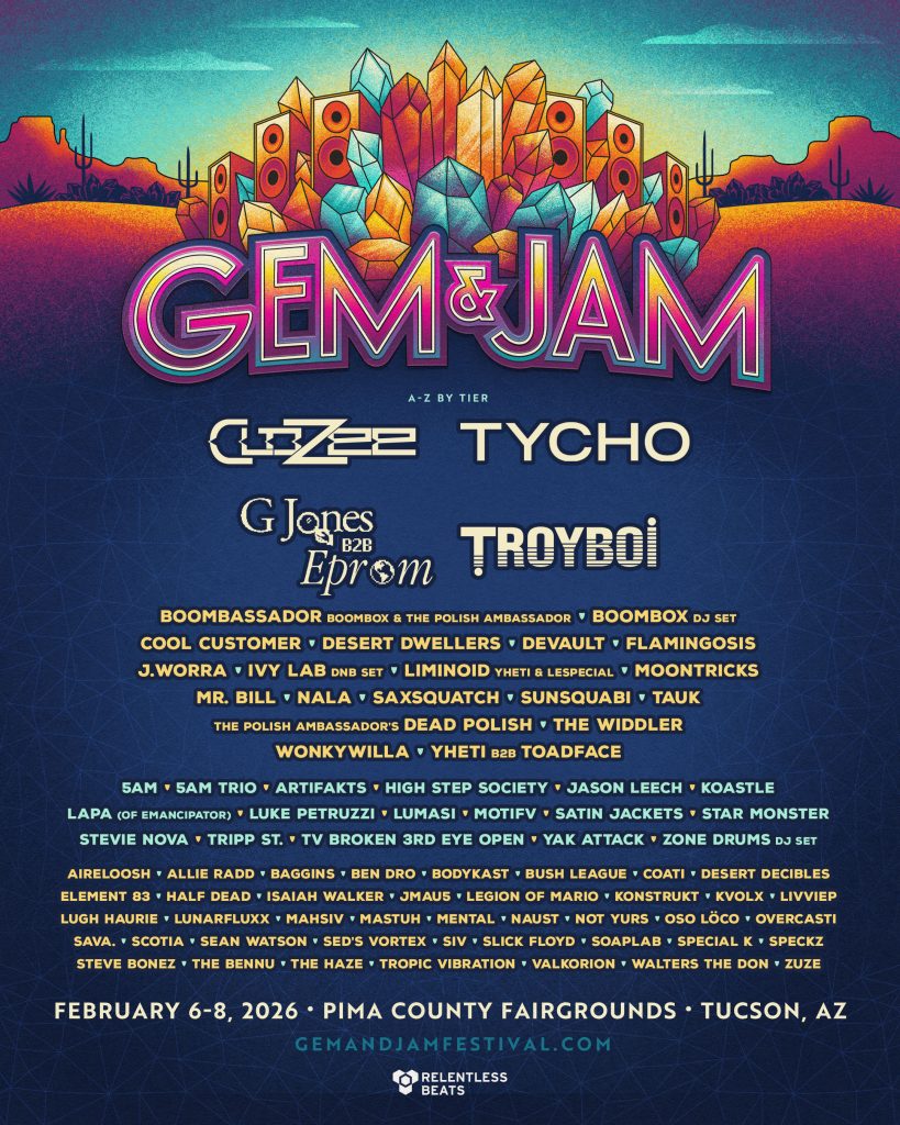 Gem & Jam Festival takes place during the world-renowned Tucson Gem, Mineral and Fossil Showcase in Tucson, AZ, making this special weekend each year the perfect pairing in music and art for gem enthusiasts and festival goers of all kinds. Join us on February 6-8th at Pima County Fairgrounds!