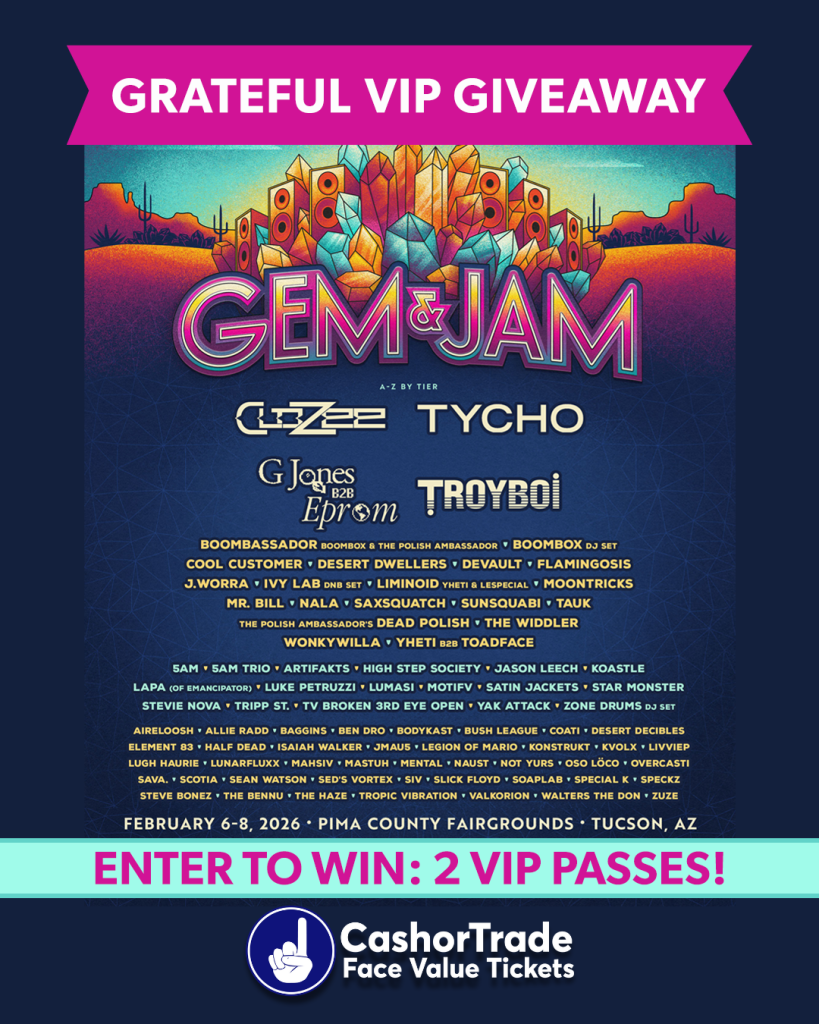 Gem & Jam teamed up with CashorTrade to bring you a Grateful VIP Giveaway. Enter to win (2) 3-Day VIP Passes for Gem & Jam Festival 2026.